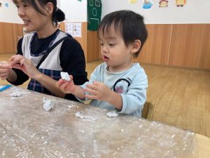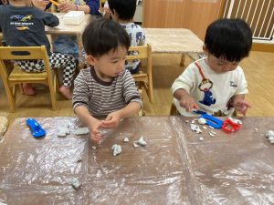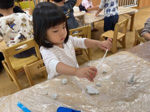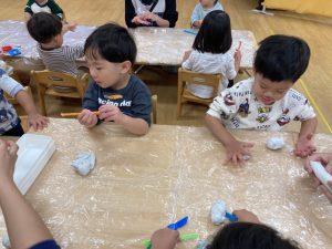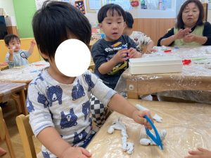 今日は雨が降ってしまったので、お部屋で粘土をして遊びました😊
