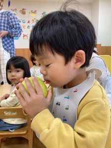 室内に戻ってからは、食育活動でりんごの観察をしました🍎