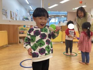 クラス別活動の後は、新聞紙遊びを楽しみました😆