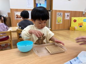 今日はモンテッソーリのお仕事をしてからお散歩へ😀