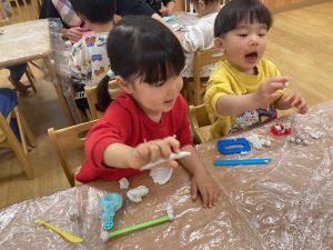 今日は粘土遊びをしました‼