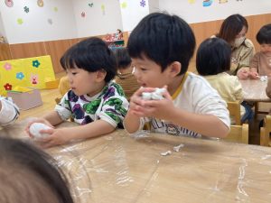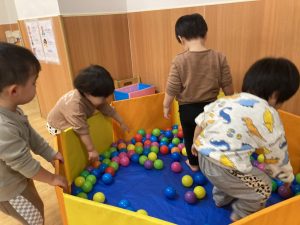 今日はあいにくのお天気だったので、お部屋で遊びました。