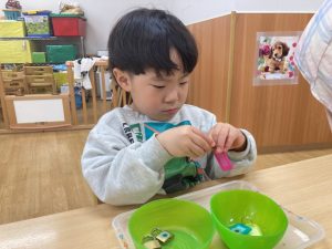 今日はモンテッソーリのお仕事をしてから体を動かして遊びました☺️